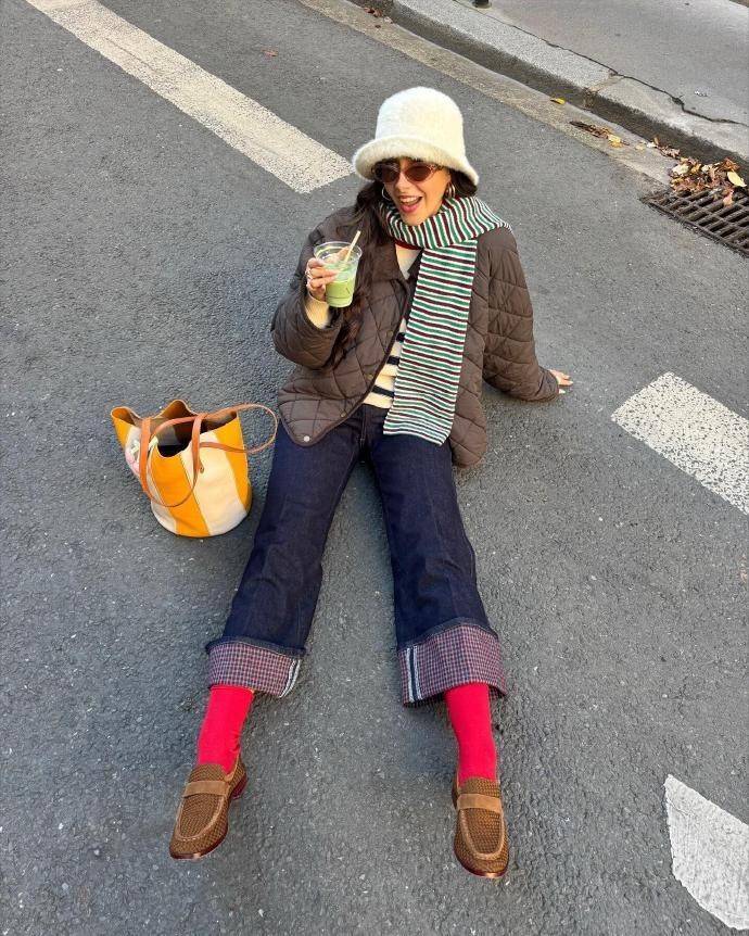 florettenacer 的冬日色彩灵感,很大一部分源自冬日自然与法式生活场景的交融。她偏爱将燕麦色、奶咖色这类带着暖意的中性色作为冬日穿搭的基底,就像冬日里洒满阳光的巴黎街头,温柔又治愈。春节期间,她会用燕麦色羊绒大衣搭配米白色高领内搭,再点缀一条浅棕色围巾,简约的色彩组合在亲友团聚的场合里显得格外亲切,无需张扬的红色,也能凭借质感传递出节日的温暖。这种色彩选择不仅适配冬日的寒冷气候,更贴合春节阖家团圆的温馨氛围,让穿搭在舒适自在的同时,自带节日的柔和滤镜。