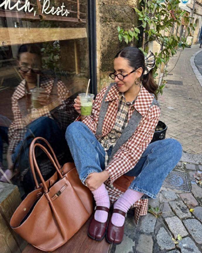 在色彩搭配上,florettenacer 擅长用冷暖平衡的思路打造春节专属造型,让非红色穿搭也能拥有足够的节日存在感。她常常选择藏蓝色与棕色的经典组合,藏蓝的沉稳与棕色的温暖碰撞出复古又高级的质感,一件藏蓝色毛呢大衣内搭棕色针织连衣裙,配上同色系的乐福鞋与腋下包,整体造型协调又有层次,无论是走亲访友还是春节小聚,都能让人在人群中脱颖而出。偶尔,她也会尝试浅灰与莫兰迪粉的搭配,浅灰的清冷中和了粉色的甜腻,温柔又不失高级感,为春节穿搭注入了一丝清新气息,证明节日氛围并非只能靠浓烈色彩营造。