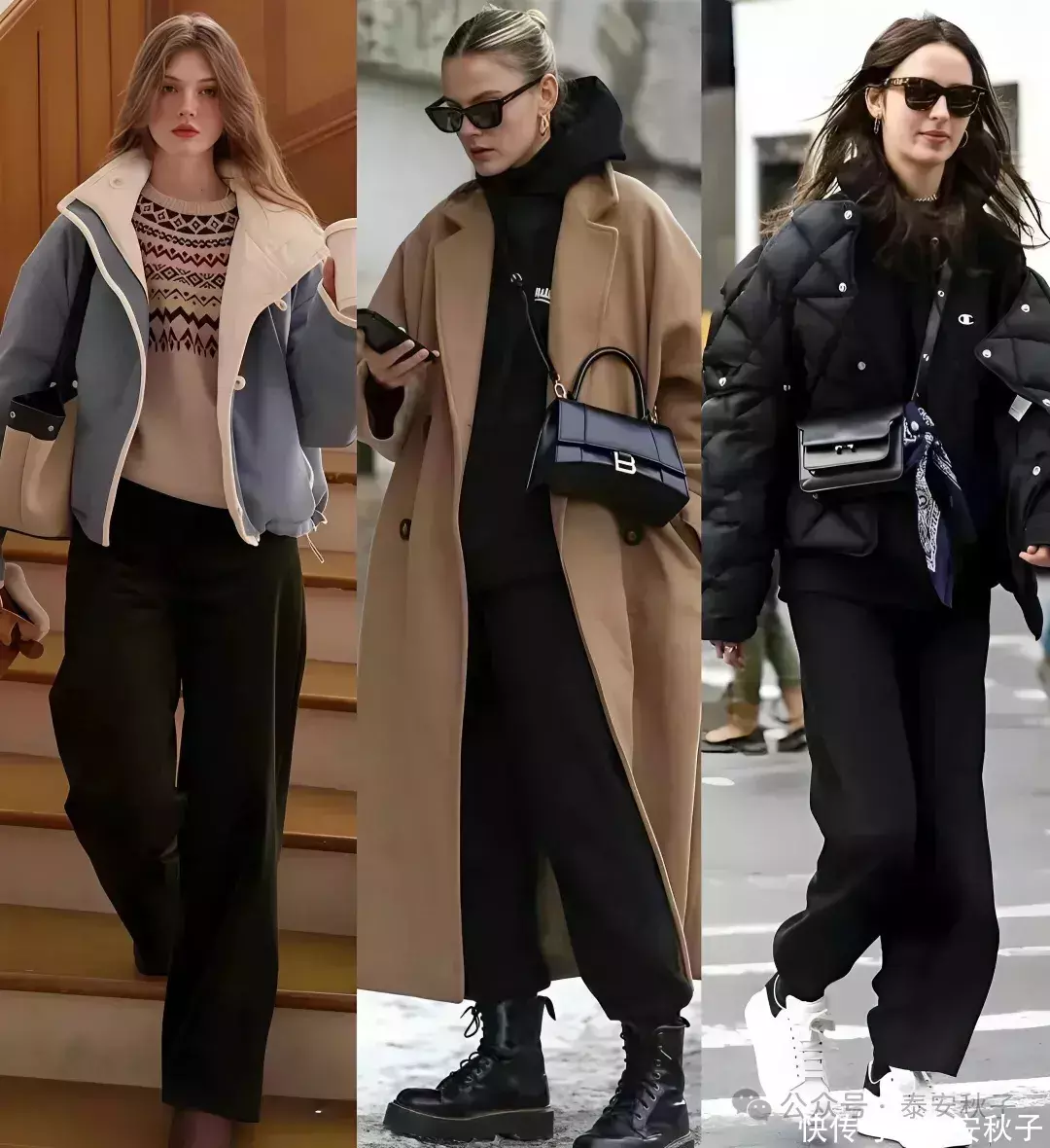 二、“黑裤子+外套”的穿搭技巧: