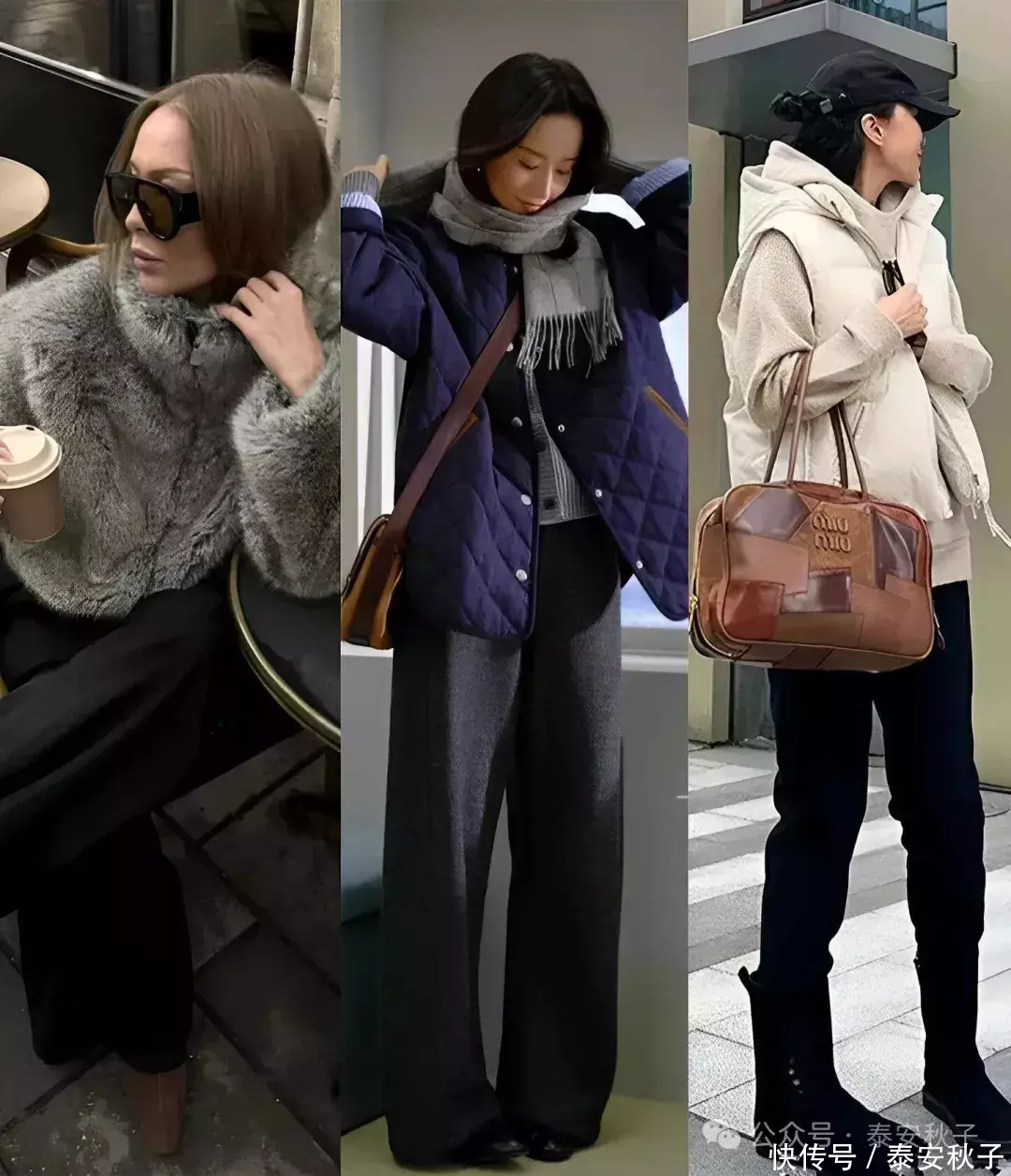 有时品味女生们,还特别喜欢用和内搭、或裤子颜色相同的帽子、包包、围巾等精美配饰来作点缀↓
