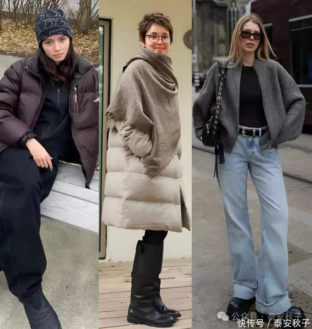 用它来配小黑裤与短款羽绒服,可以穿出轻松自在的休闲风格,洒脱又随意。