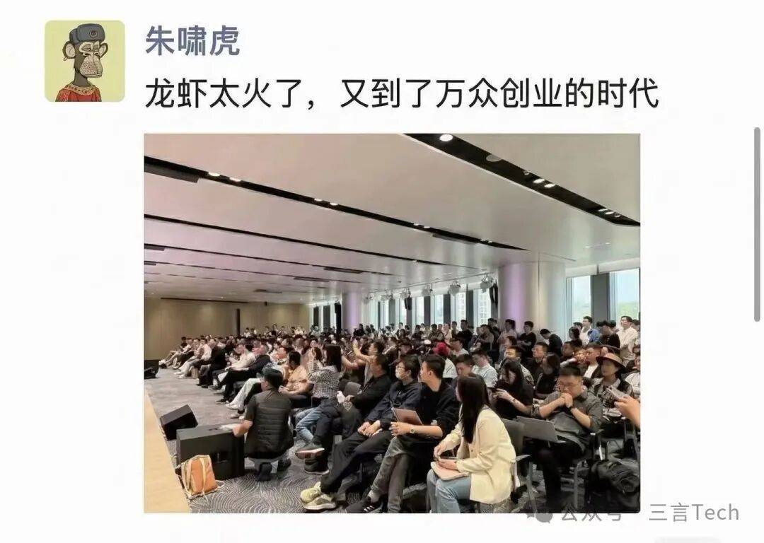 朱啸虎在朋友圈贴出了现场图,并配文:龙虾太火了,又到了万众创业的时代。