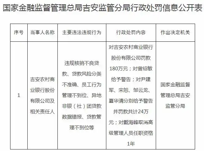 吉安农商银行再次收到大额罚单在线炒股配资之家。