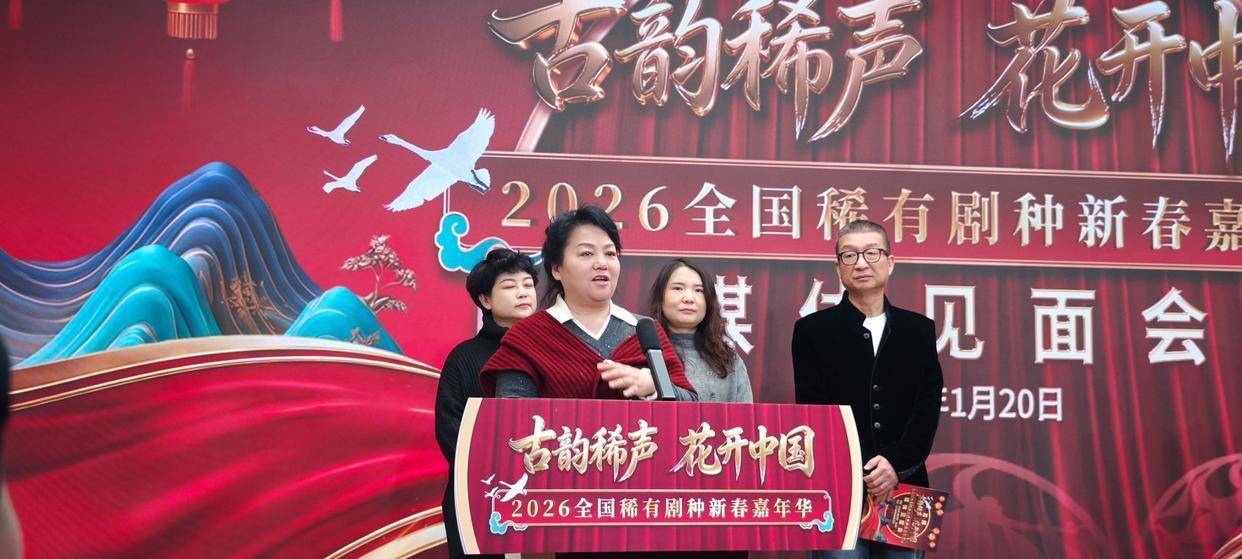 三门峡广播电视台党组书记、台长呼延向阳介绍了2026全国稀有剧种新春嘉年华进展情况。中国剧协副主席、河南省剧协主席李树建,发布了2026全国稀有剧种新春嘉年华相关情况。去年10月,“古韵稀声 花开中国”2026全国稀有剧种新春嘉年华活动正式启动。此后,河南李树建戏曲艺术中心和三门峡广播电视台联合组成寻访团队,开始了一场跨越时空的稀有剧种寻根之旅。在两个多月的时间内,寻访团队行程三万多公里,走进了28个省(市)和地区,成功挖掘、记录了近200个濒临消失的稀有剧种,共同构成了一幅立体的“中华文化基因图谱”:东北二人转的豪爽、西北“花儿”的苍凉、江南乱弹的婉转、西南傣剧的灵动……每一种腔调,都是地理、历史、语言与族群记忆的结晶。值得一提的是,寻访团队每到一处,首先寻找的是当地最年长的艺人——他们往往是某个剧种最后的“活字典”。
