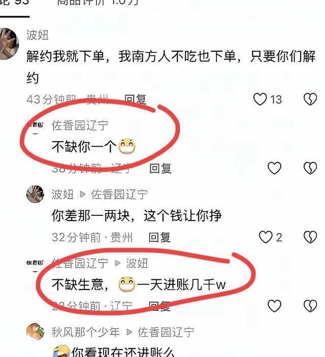 刚开始,佐香园还挺维护自家代言人的,回怼网友: “不缺你一个”、“不缺生意”。 如此傲慢的态度,完全不考虑民意。