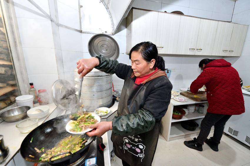 院里杀猪忙,厨间饭菜香。女主人姜吉莲手脚麻利地张罗着杀猪宴,洗切、腌制、翻炒、炖煮,一道道农家菜肴接连出锅:泡椒炒猪血酸辣爽口,酸菜炒肥肉油而不腻,凉拌香肠咸香入味,还有软糯的南瓜饼、鲜美的排骨汤……诱人的香气弥漫整个小院,勾人味蕾。“今天杀年猪,大家都来帮忙,炒几个家常菜,让大家吃好喝好!”姜吉莲高兴地说。