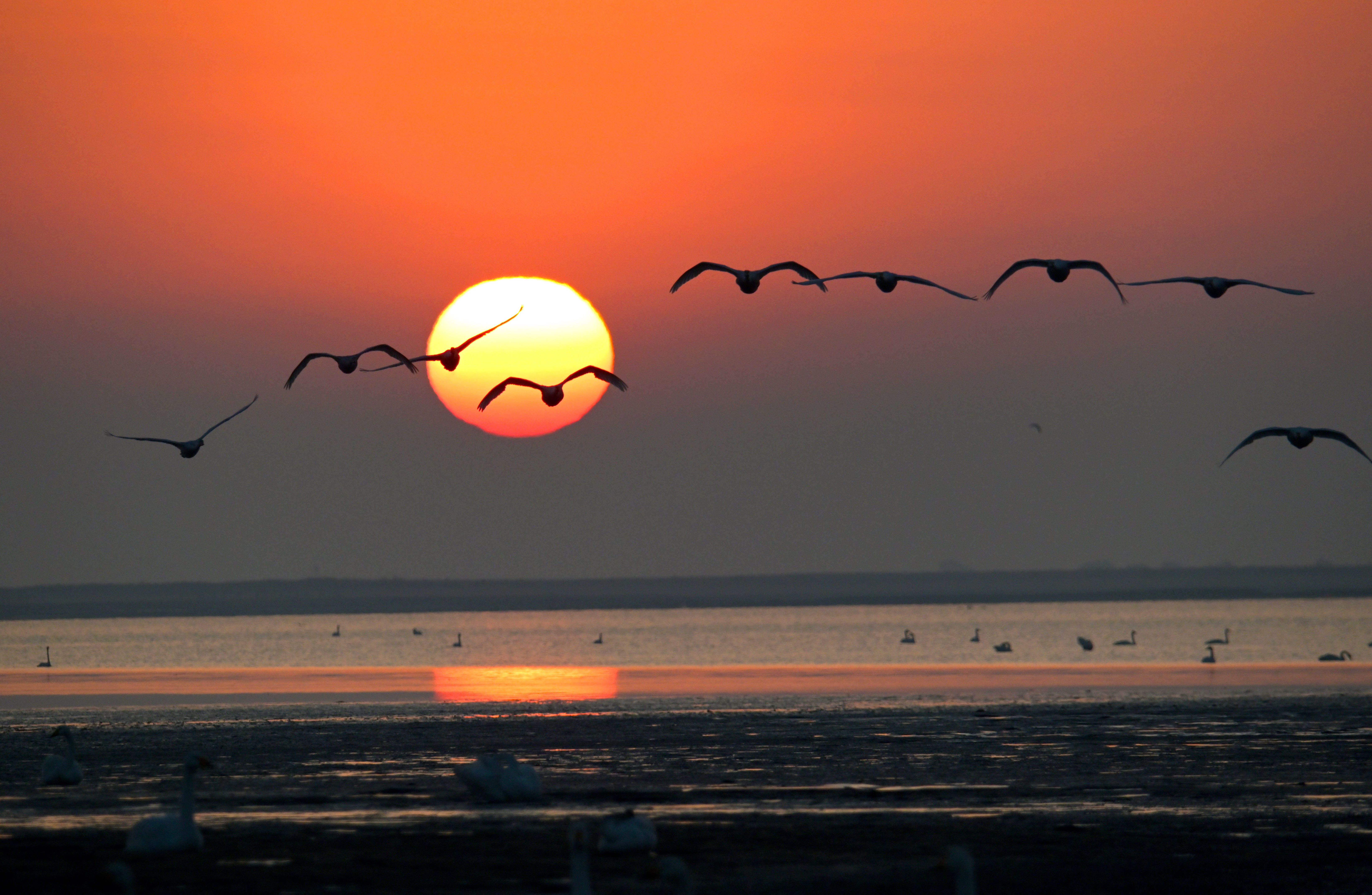 ↑2026年2月1日在山东省荣成市大天鹅自然保护区拍摄的风光。CICPHOTO/杨志礼 摄