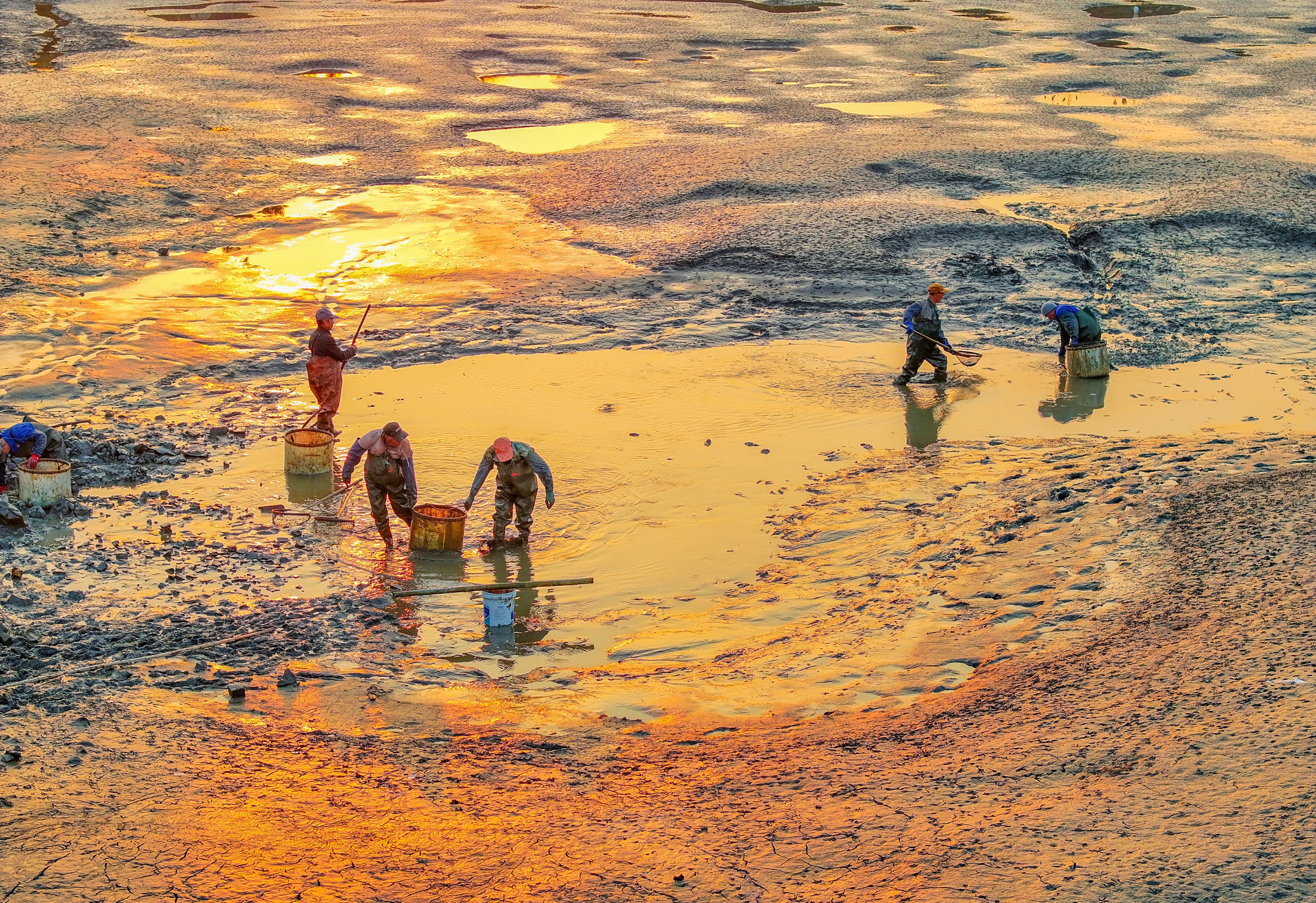 日出与日落时分,橙色的阳光照耀在山水之间,宛如一张张宁静美丽的画作。
