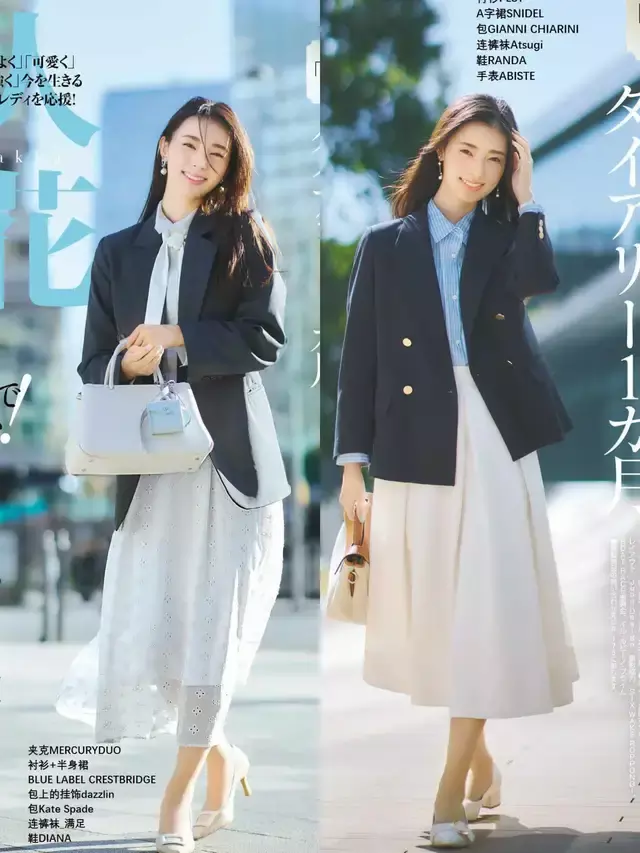 上面用一件西装外套内搭衬衫,加上一条伞状款式的半身裙。无论是日常出街、约会通勤还是聚会正式场合,都能呈现出你的高级感,优雅又得体。