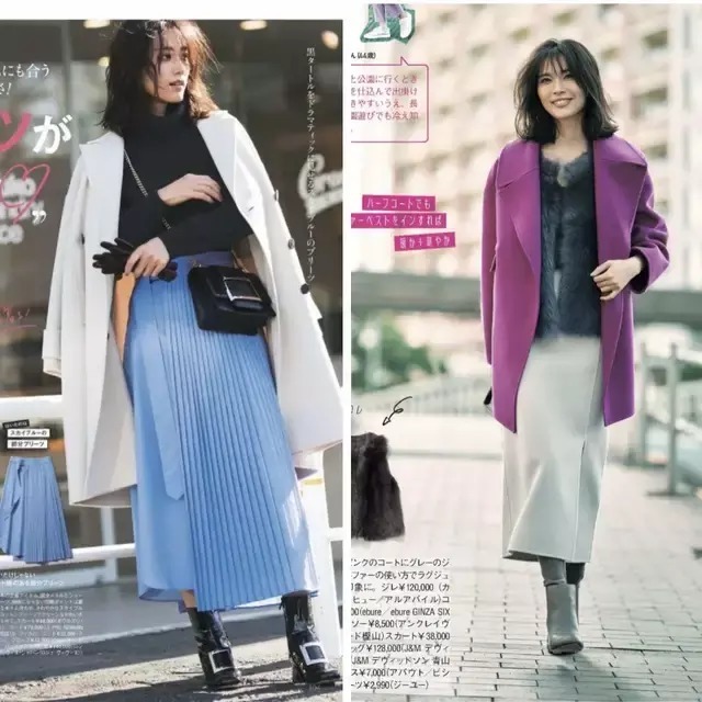 上衣的不同同样,也会改变整体的风格走向,咱们可以选择一件紫色的翻领短大衣,或者是白色的长款大衣,上身一穿就能呈现强大气场。