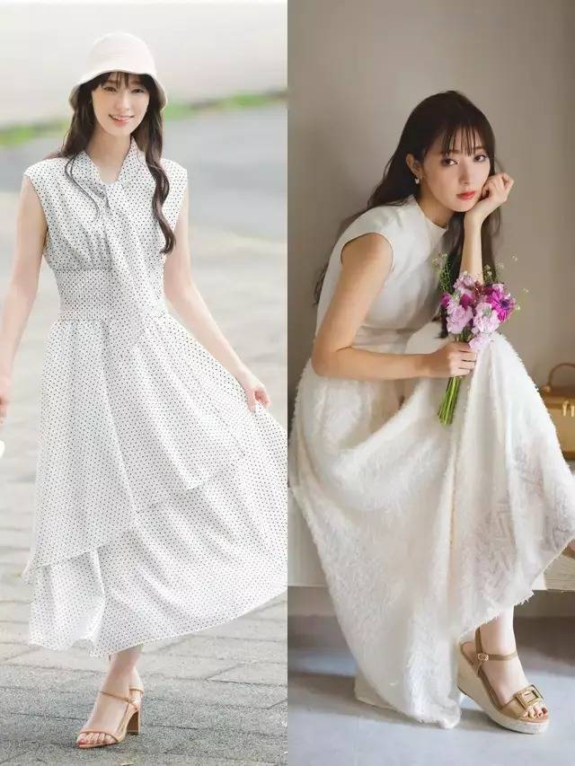 这个春天值得我们入手的还有一条白色的连衣裙或是波点白色衬衫。连衣裙上面这两条裙子上身效果仙气飘飘,有一种“初恋”的时尚气息,轻盈又有格调。