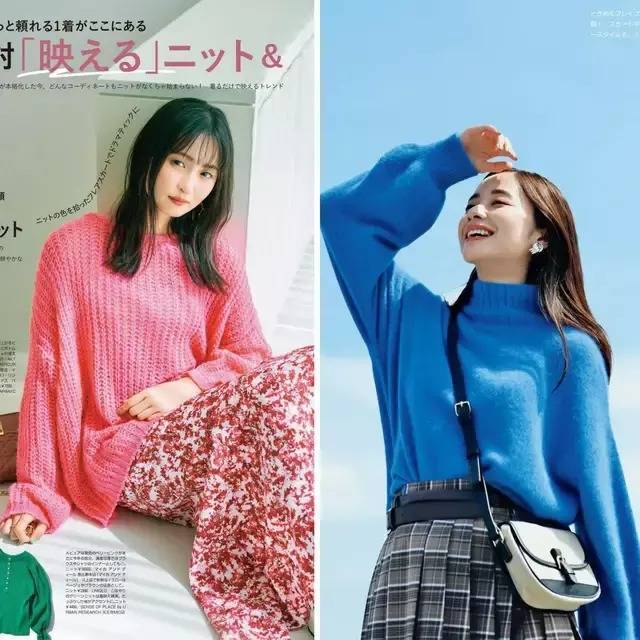 毛衣或是针织开衫,它天生就拥有温柔元素,当咱们选择一件蓝色的针织毛衣叠穿白色针织打底衫,加上一条藏蓝色的 A 字半身裙,既有温柔优雅的腔调,又不失高贵气质。